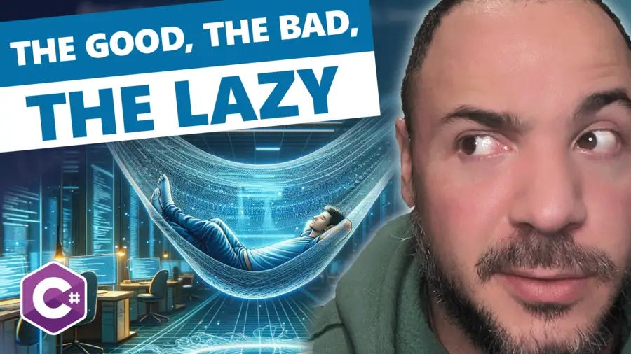 This newsletter issue was all about comparing IEnumerable / Iterators in C# with things like a fully materialized list. I share some of my journey in code bases using both sides of this, the pros and cons of each, along with where I’m headed now.